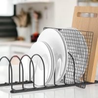 Craftize Mstore Iron Pan Multifunctional Countertop Kitchen Cabinet Pantry Pan&Pot Lid Organizer Baking Tray&Chopping Board Tiered Shelf Rack – Pan Storage – Kitchen Cupboard Organiser (Retro)