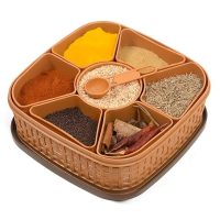 Clazkit Plastic Square 7 Section Multipurpose Masala Dabba, Spice Box Set – Color May Vary