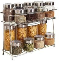 CR18 COLLECTION Stainless Steel 2 Layer Spice Rack | Modular Kitchen Storage Organizer | Multipurpose Shelf for Countertop, Tabletop | Tiered Silver Rack