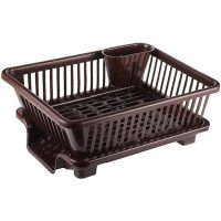 Kitchenwell Sink Dish Rack | 3 in 1 Large Durable Plastic Drainer Drying Rack Washing Basket with Tray | Dish Rack Organizers, Utensils Tools Cutlery | Brown, Pack of 1